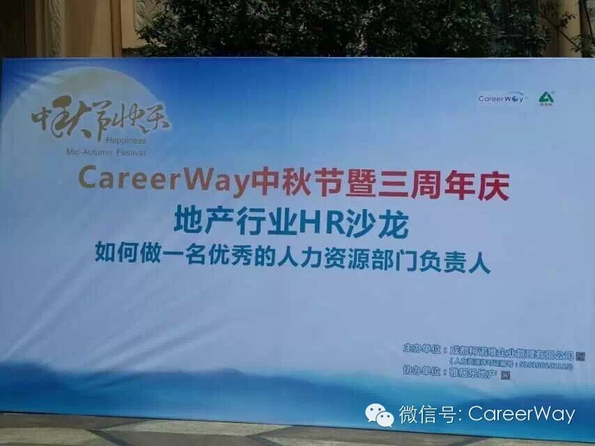 2014年8月27日,时值中秋佳节前夕,恰逢CareerWay成立三周年之际,为答谢广大合作伙伴,CareerWay举办了“中秋节暨三周年庆地产行业HR沙龙”活动。